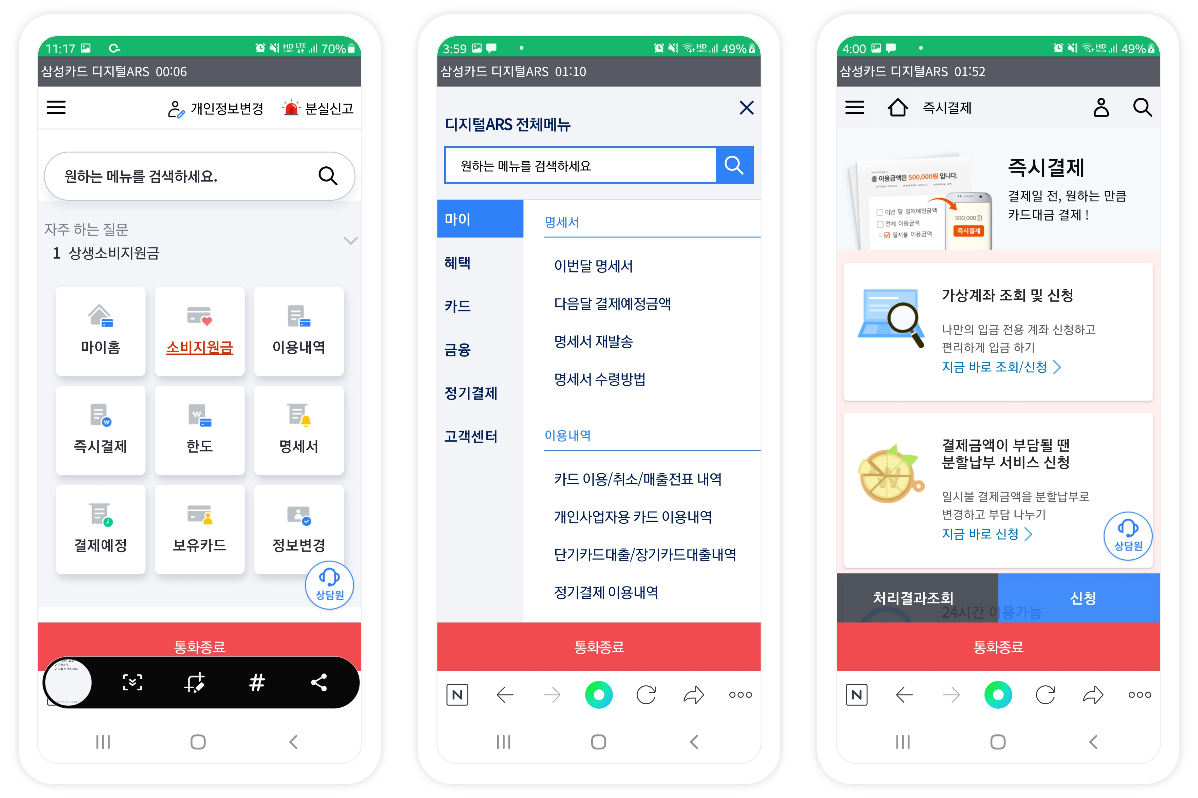 Samsung Card introduced the 'Digital ARS' roll, the next-generation ARS, and set up the Samsung Card application (app) screen through the web when connecting to the customer center so that all services in the app can be used. When entering the screen, it is possible to use the inquiry service after authentication with the card password, analyze customer service usage patterns, and adjust the menu display or order on a customer-by-customer basis.